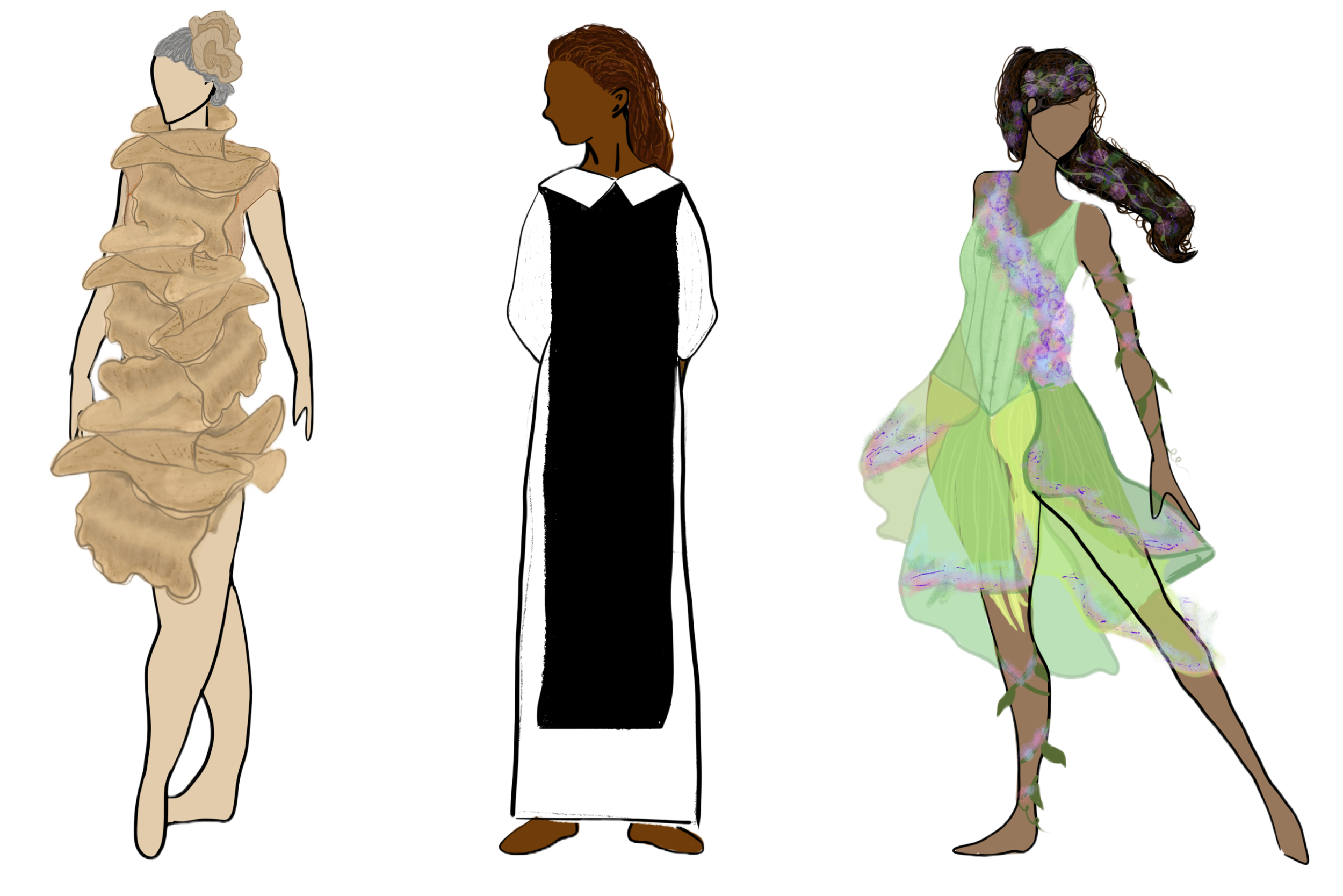 Final Costume Design Sketches based off the concept “The Maiden, Mother, Crone'“